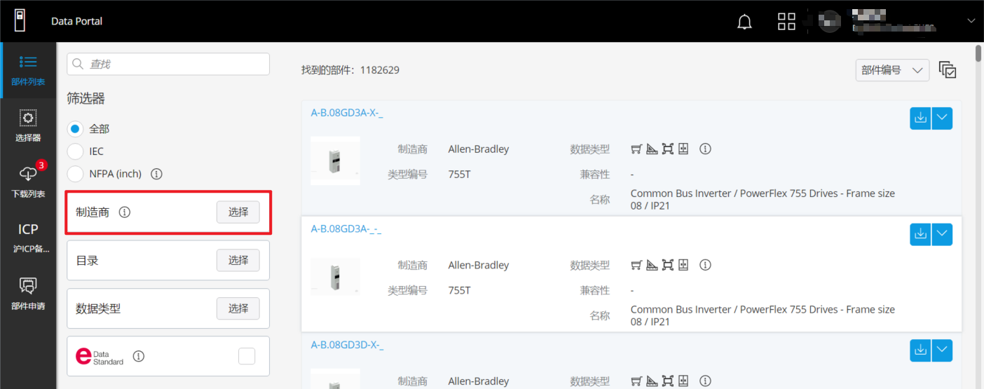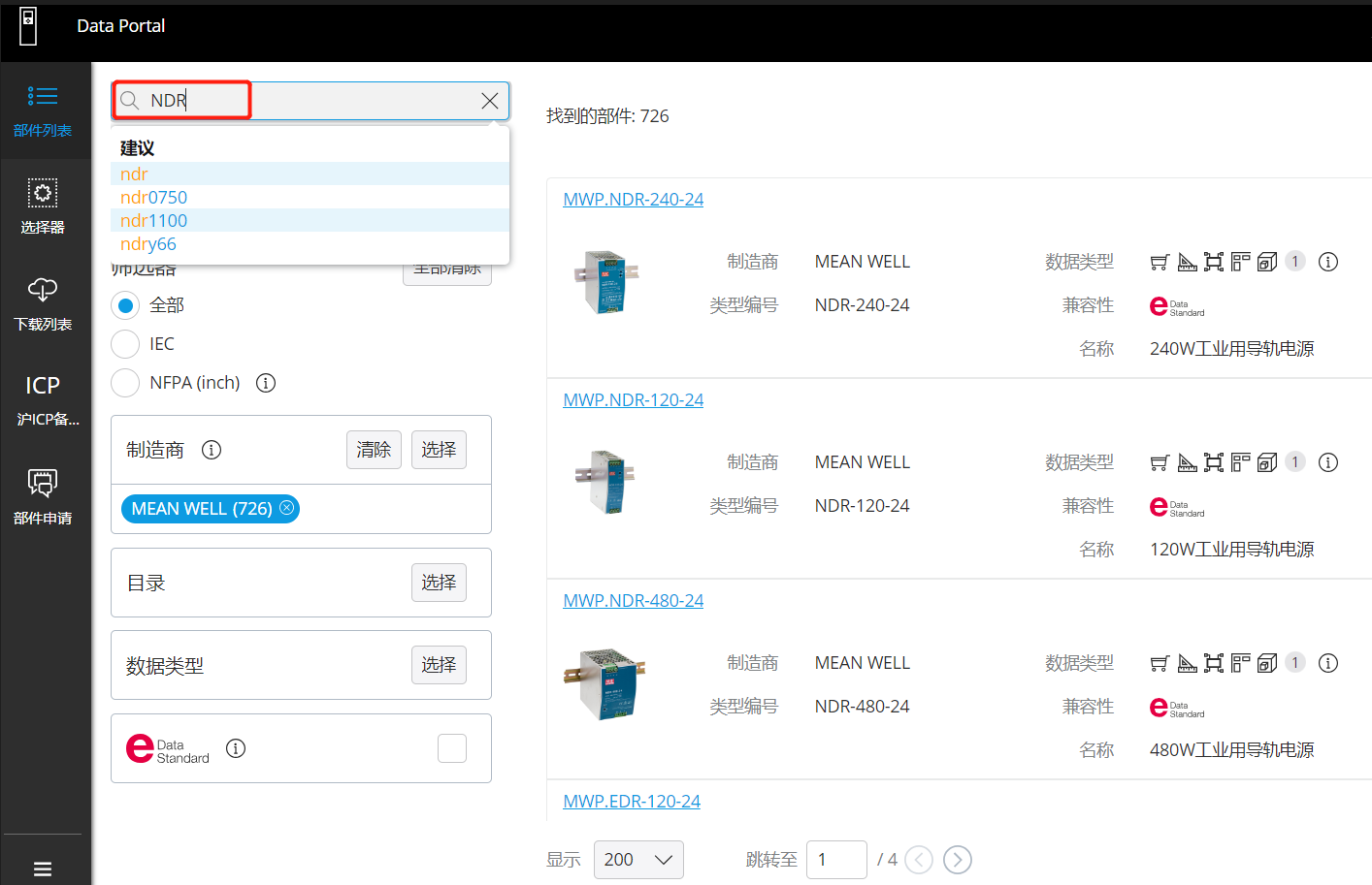在Eplan Data Portal平臺中,點擊制造商選擇按鈕,然后選擇明緯Logo,點擊應用。