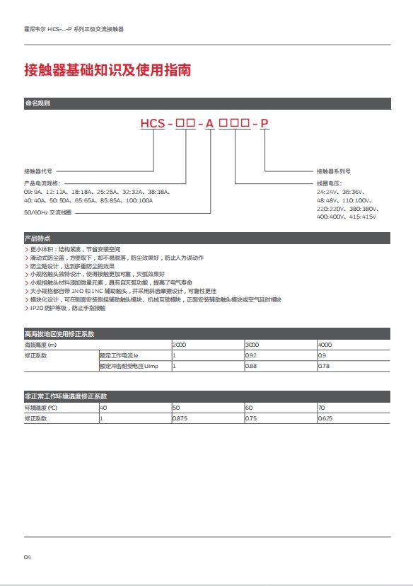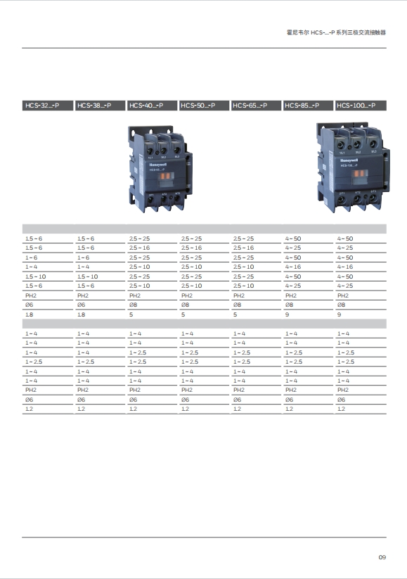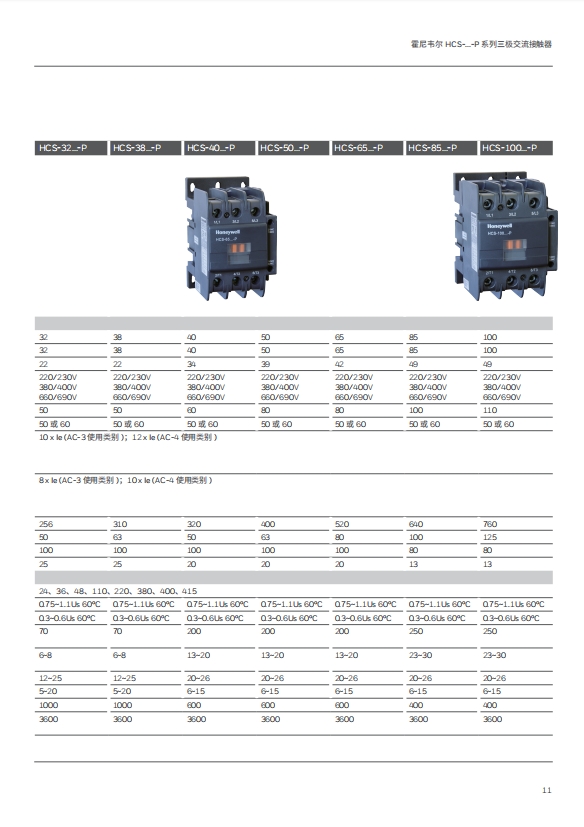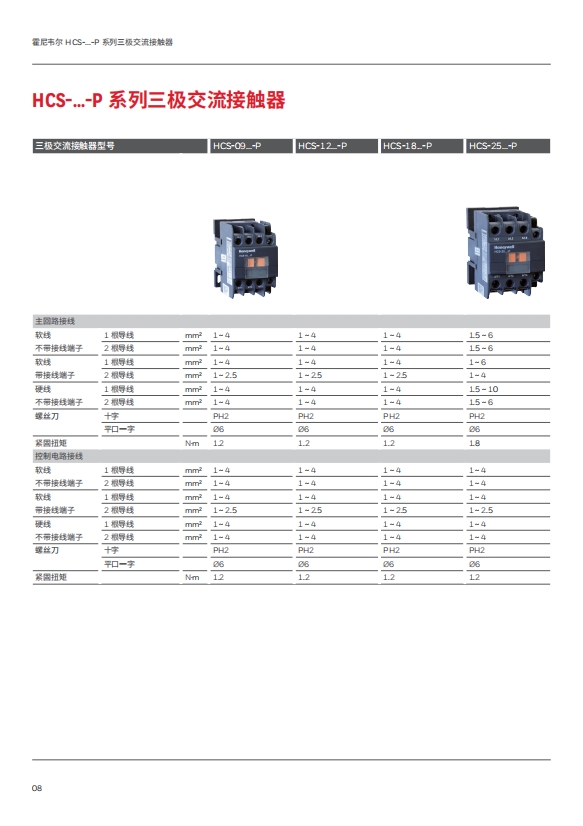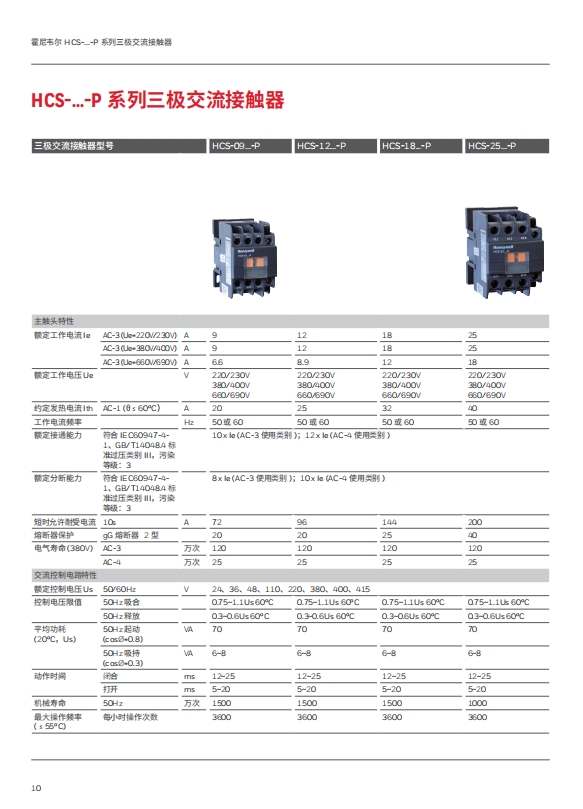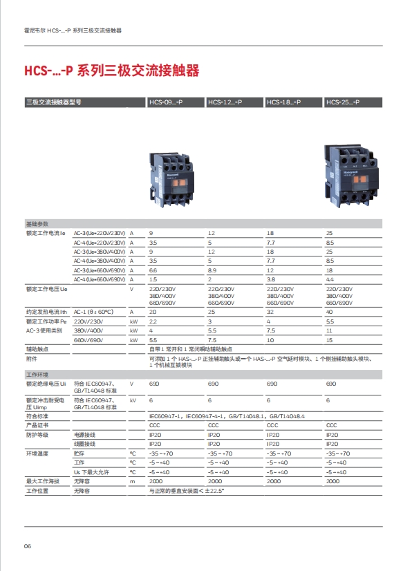 霍尼韋爾 HCS-...-P 系列三極交流接觸器