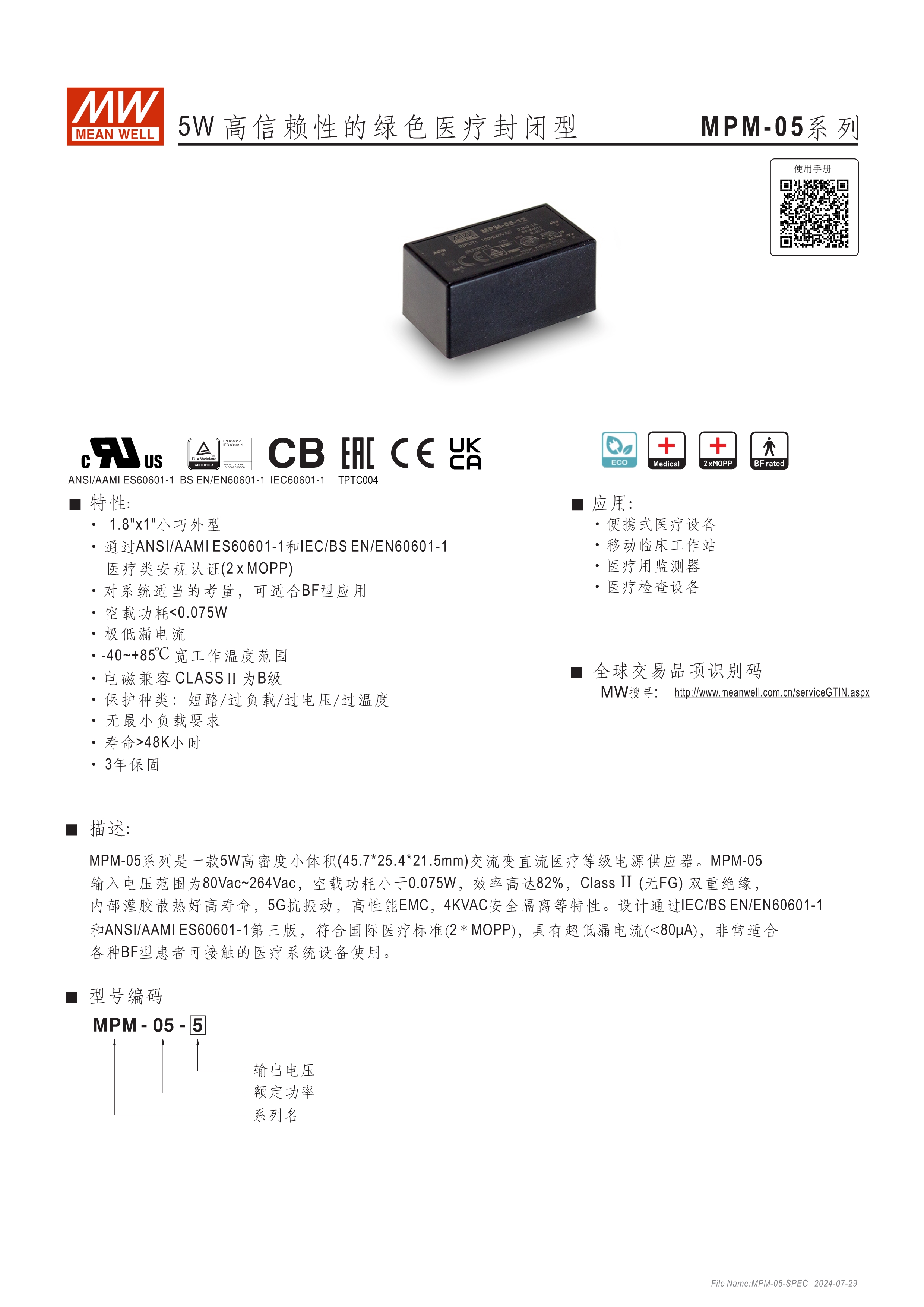 安裝于終端設(shè)備之PCB上 通過醫(yī)療類安規(guī)認(rèn)證 (2xMOPP) 在適當(dāng)系統(tǒng)條件下,適合用于BF應(yīng)用