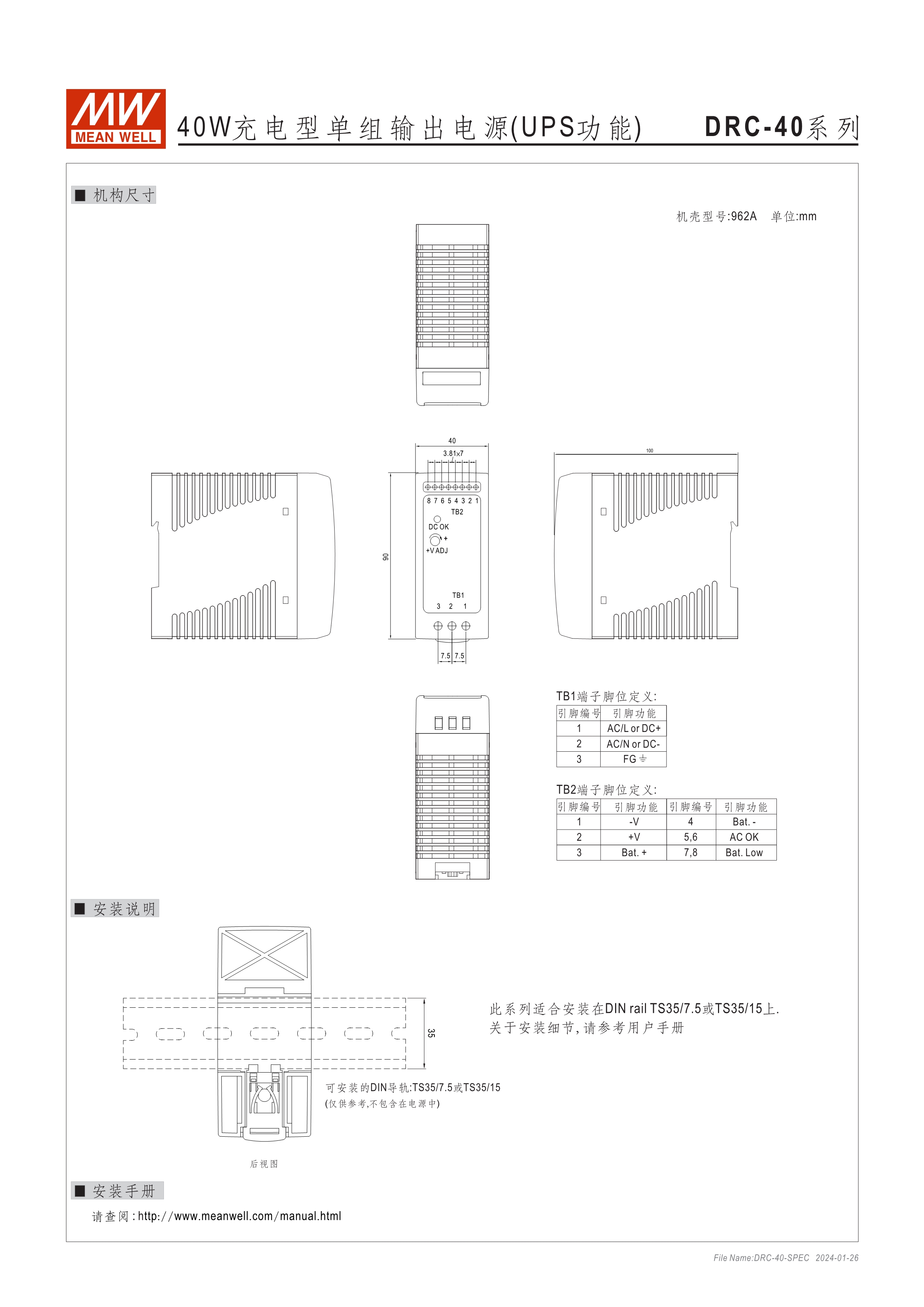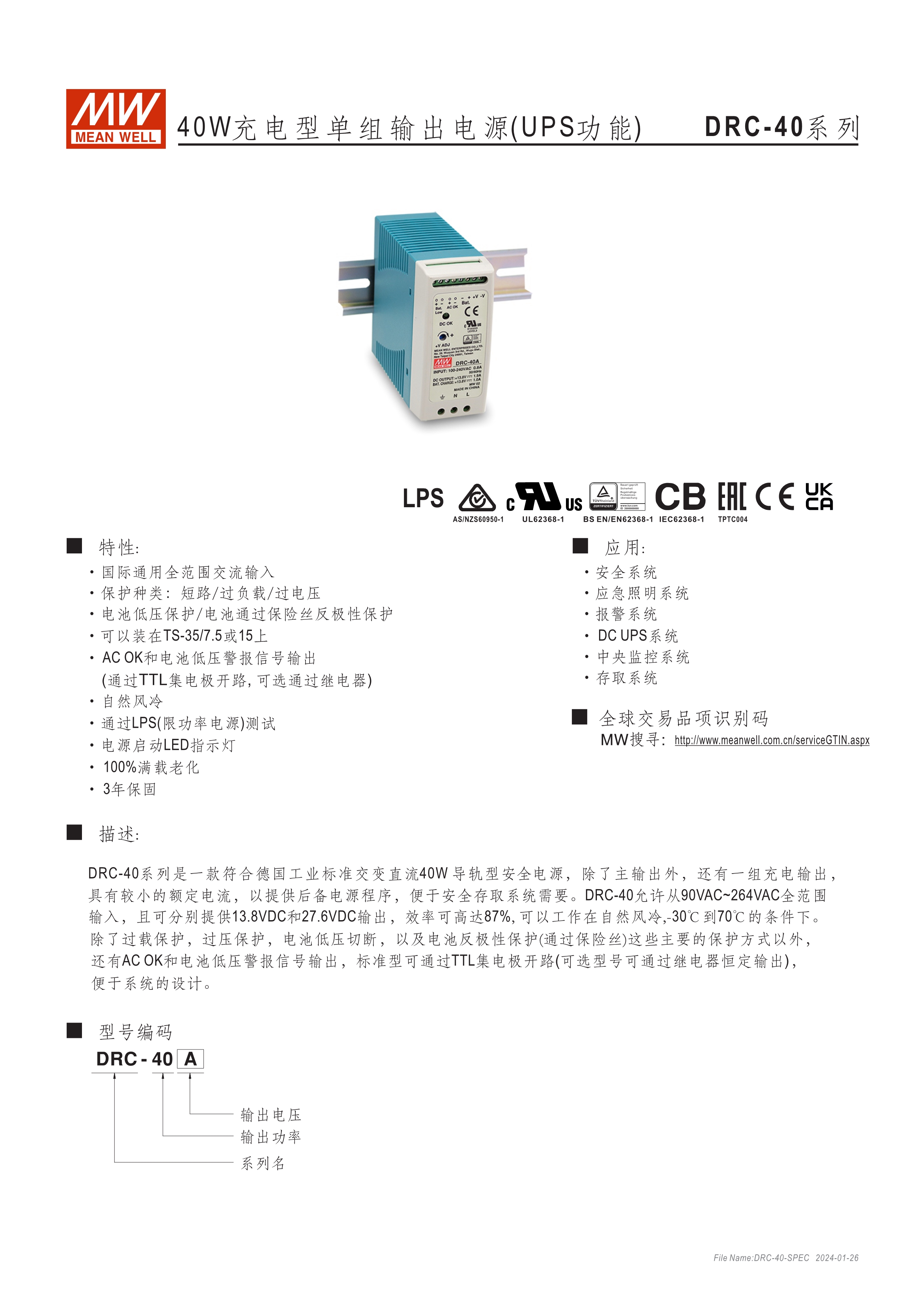 具UPS 功能(需外接電池) 適合用于安全監(jiān)控設備或各式電池備援系統(tǒng) 適合安裝于DIN rail TS35 / 7.5 或 15