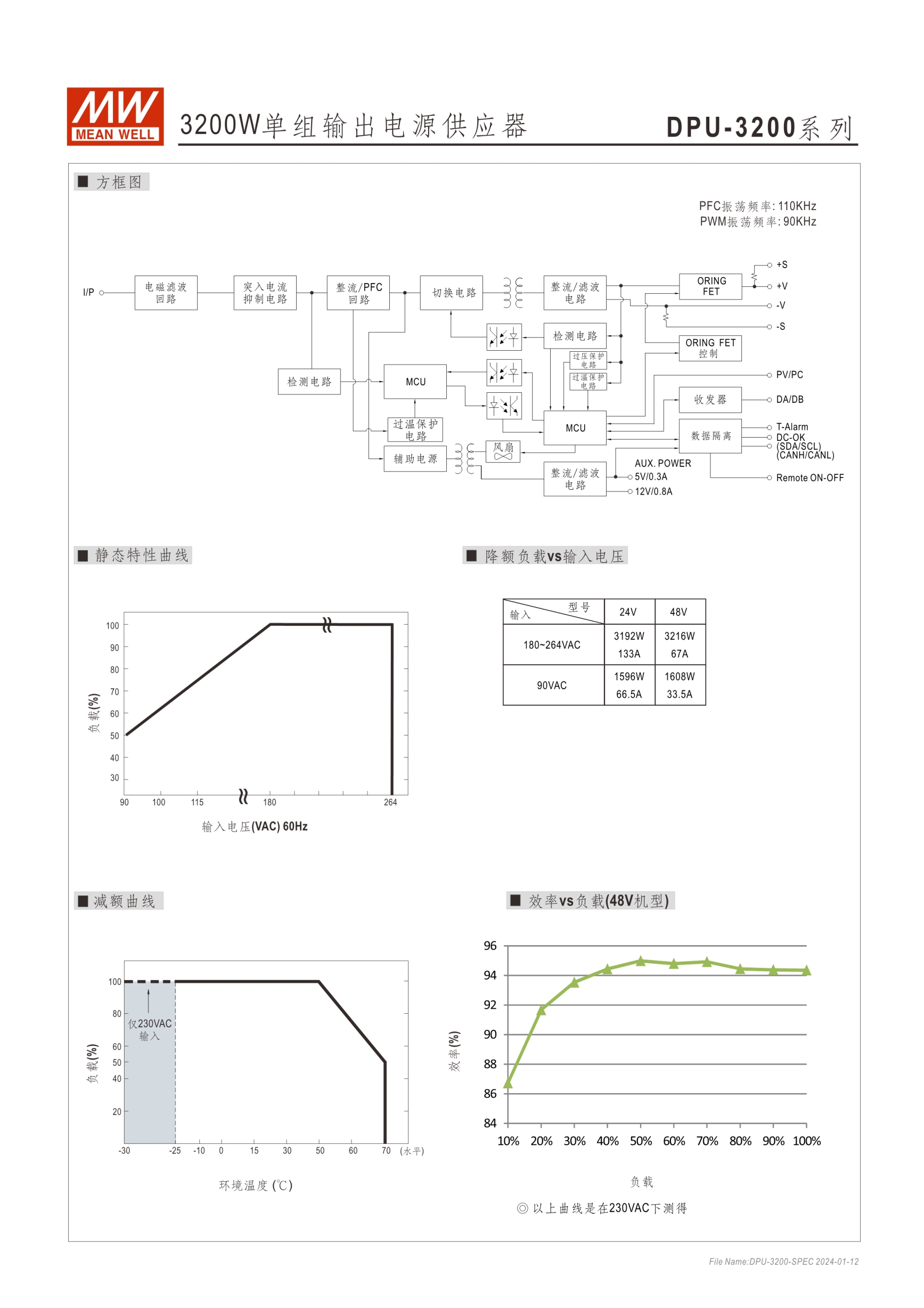 環(huán)球交流輸入/全局輸入電壓 內建主動式功率因子矯正功能(Active PFC) 交換效率高達94.5% 直流散熱風扇強制氣冷 輸出電壓與恒功率可調功能 內建Or-ing FET,支持熱抽換/插拔功能 保護機制: 短路/過負載/過電壓/過溫度保護 可選配三防漆 認證安規(guī): UL/TUV/EAC/CE/CB 5年保固