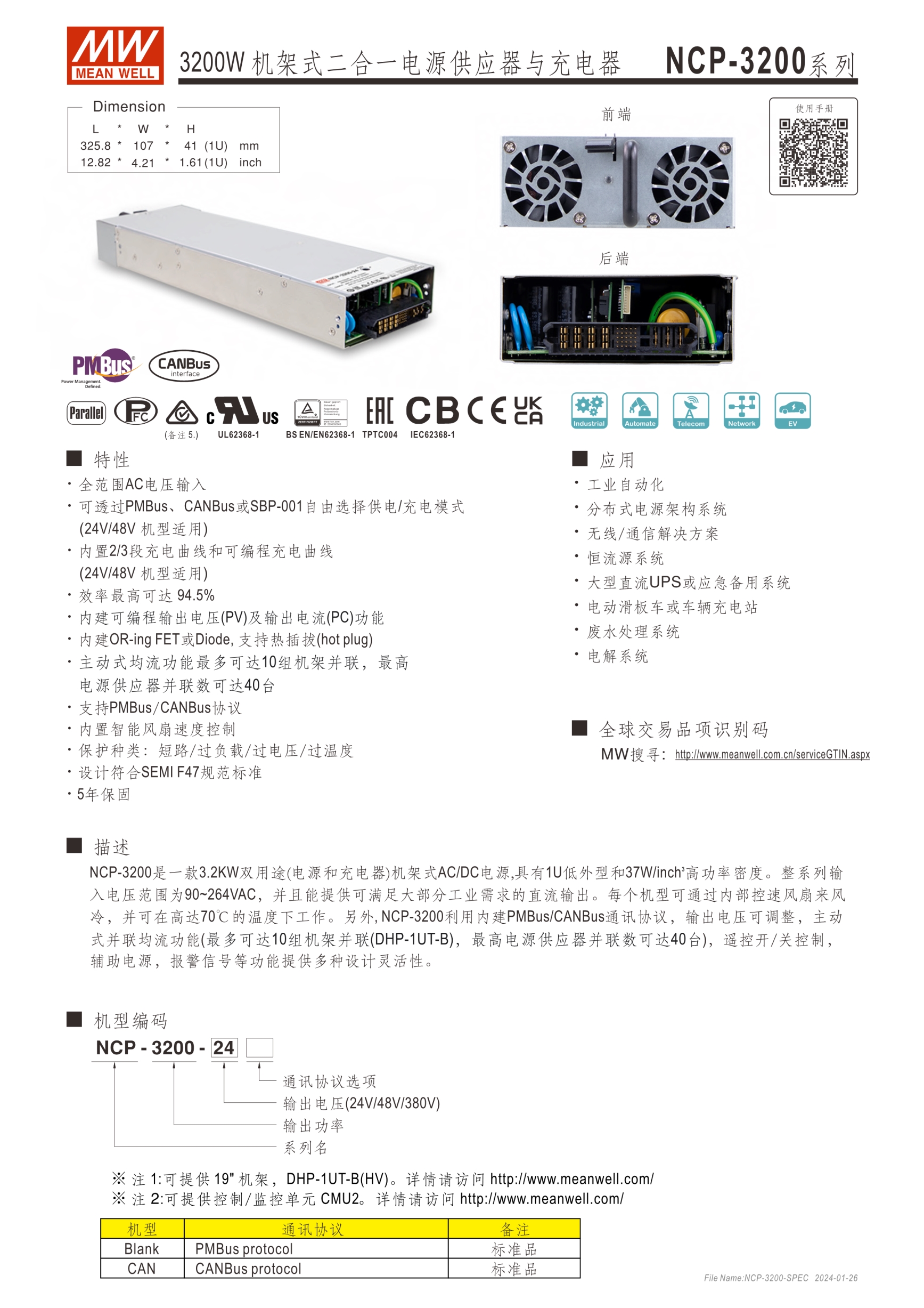 系統(tǒng)電源解決方案 (PDF) PMBus、CANBus可選擇供電或充電模式或SBP-001(僅適用于24V/48V型號(hào)) 內(nèi)置2/3段充電曲線和可編程曲線(僅適用于2V/48V型號(hào)) 效率高達(dá)94.5% 具有OR-ingFET余能,支持熱插(hotplug) 主動(dòng)式并聯(lián)均流多達(dá)10個(gè)機(jī)架(DHP-1UT-B)和可并聯(lián)之最大電源為40臺(tái) 具有1C接口,支持PMBus/CANBus協(xié)議