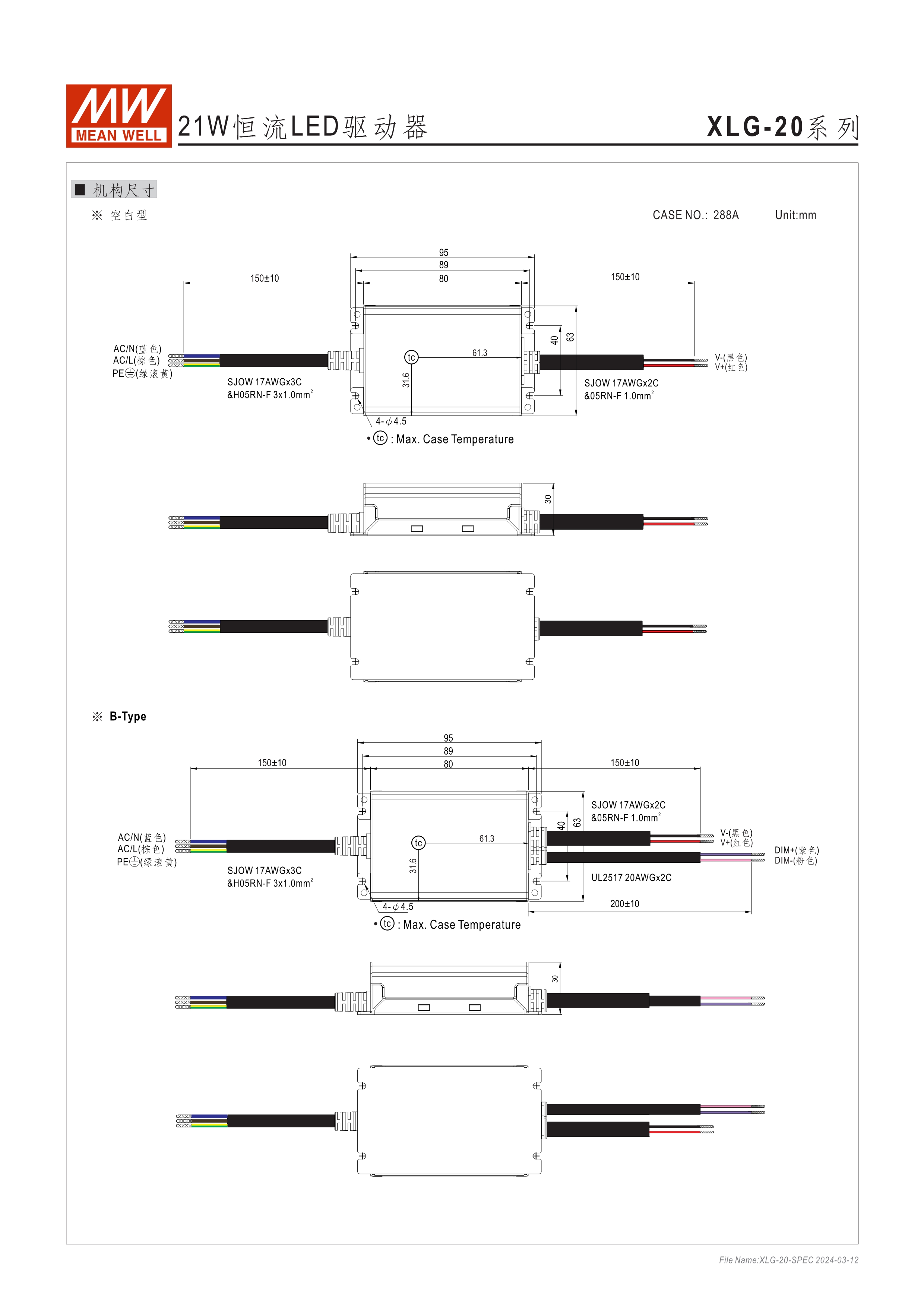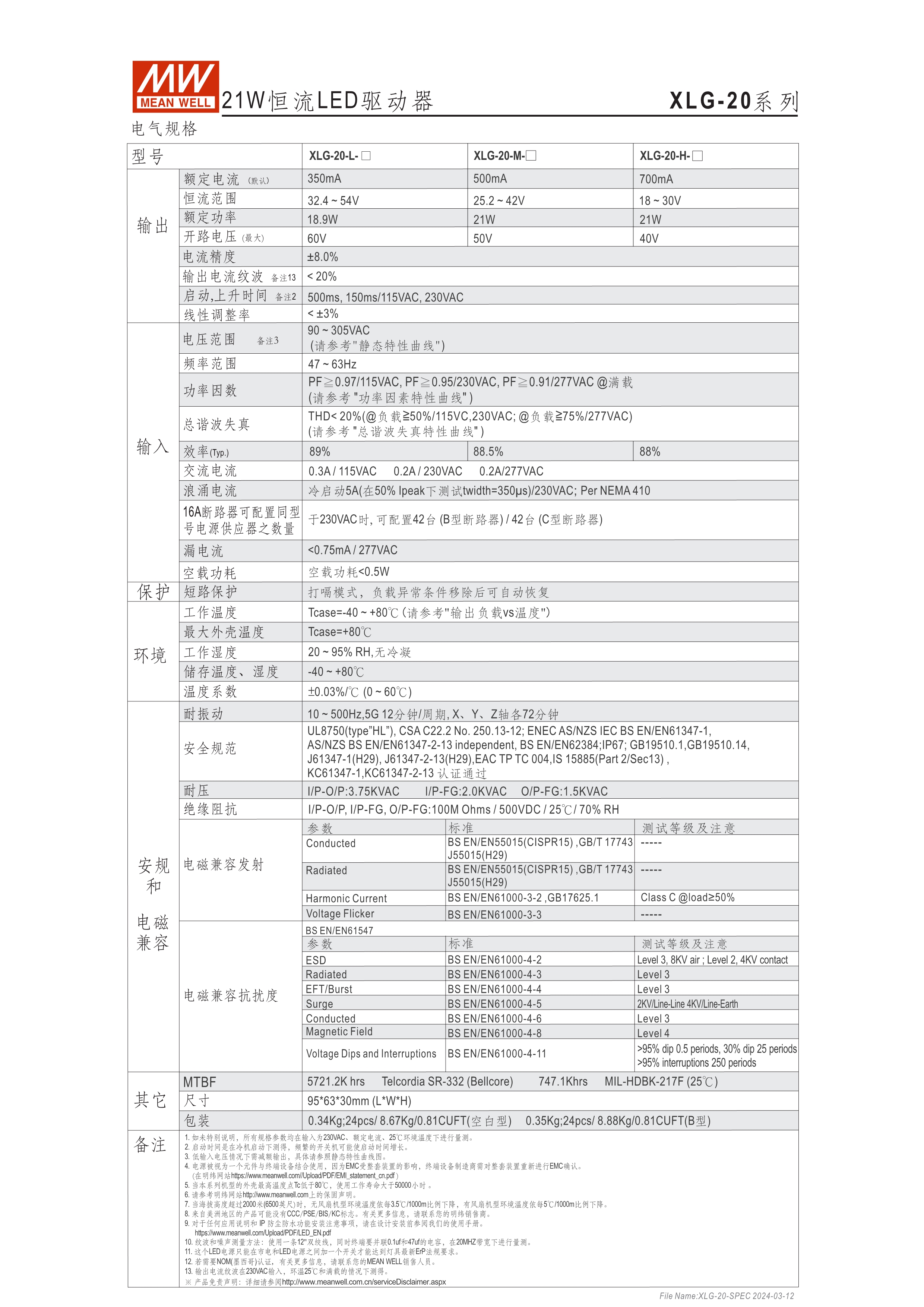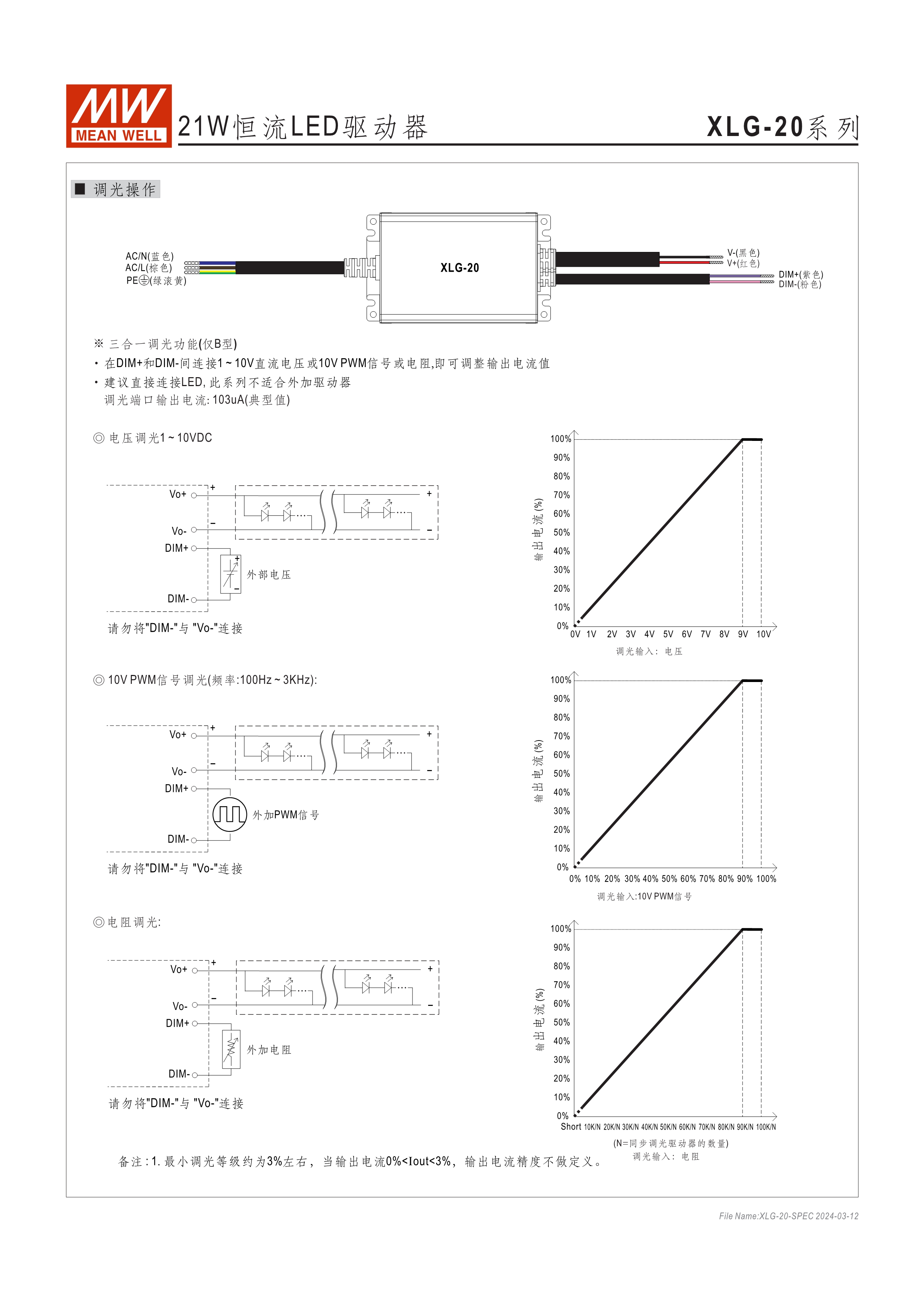 寬電壓輸入范圍100~305VAC (XLG-20為90~305VAC) 寬電流輸出可調(diào)整恒功率設(shè)計(jì) (XLG-20為恒流模式) 主動式PFC設(shè)計(jì)及輸出效率可達(dá)90% 調(diào)光功能: 三合一 / DALI 保護(hù)功能:短路、過電壓、過溫度 雷擊保護(hù)耐壓設(shè)計(jì)6KV(L/N-FG)/4KV(L-N); XLG-20為4KV(L/N-FG)/2KV(L-N) 5年保固