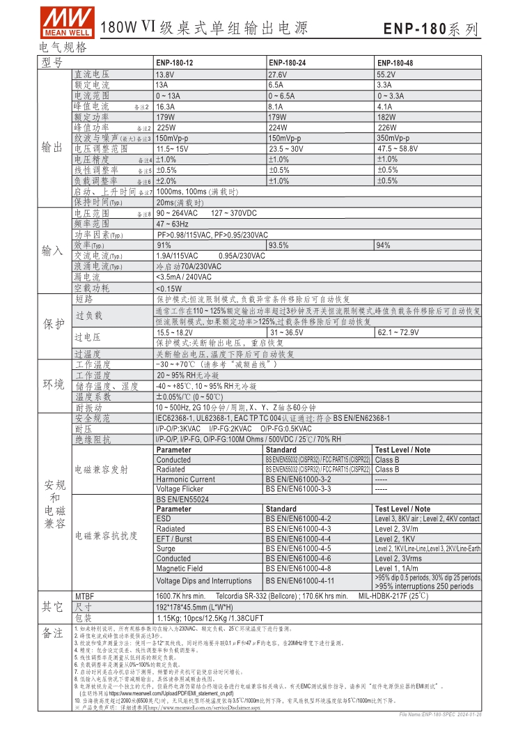ENC:可編程充電器, ENP:Level VI電源供應(yīng)器 可透過SBP-001編程器設(shè)定充電電壓、電流、停充時(shí)間 NTC溫度補(bǔ)償功能 (ENC系列) 無風(fēng)扇設(shè)計(jì)、靜音 保護(hù)功能:短路、過壓、過溫度保護(hù)(ENC/ENP系列); 電池過低、過高、極性反接(僅ENC系列) 適用于鉛酸電池 3年保固