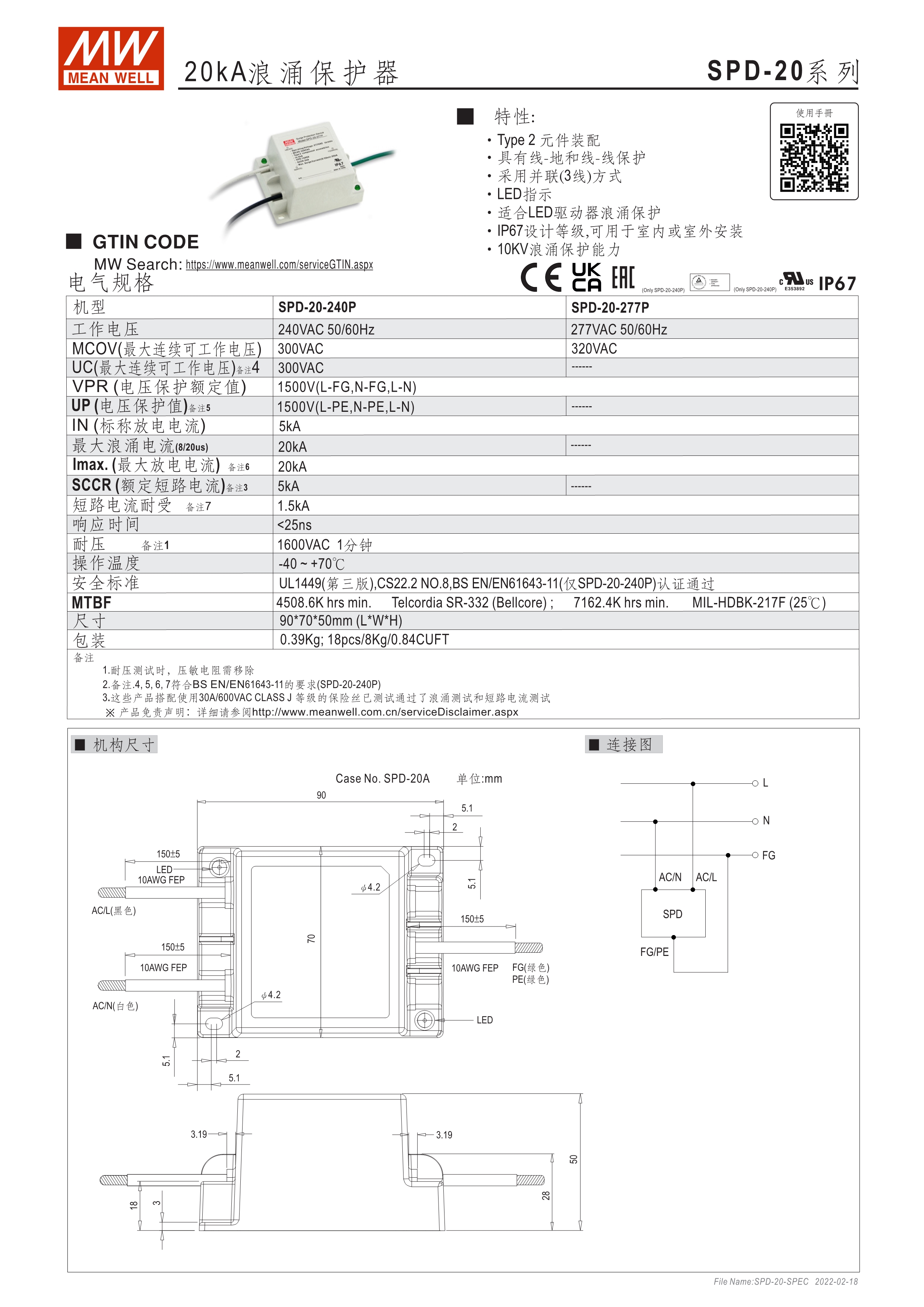 10kA/20kA雷擊突波保護(hù)器 線對(duì)地與線對(duì)線保護(hù) 適合于雷擊瞬間保護(hù)LED電源 IP66/67設(shè)計(jì)等級(jí),適用于室內(nèi)或是室外安裝