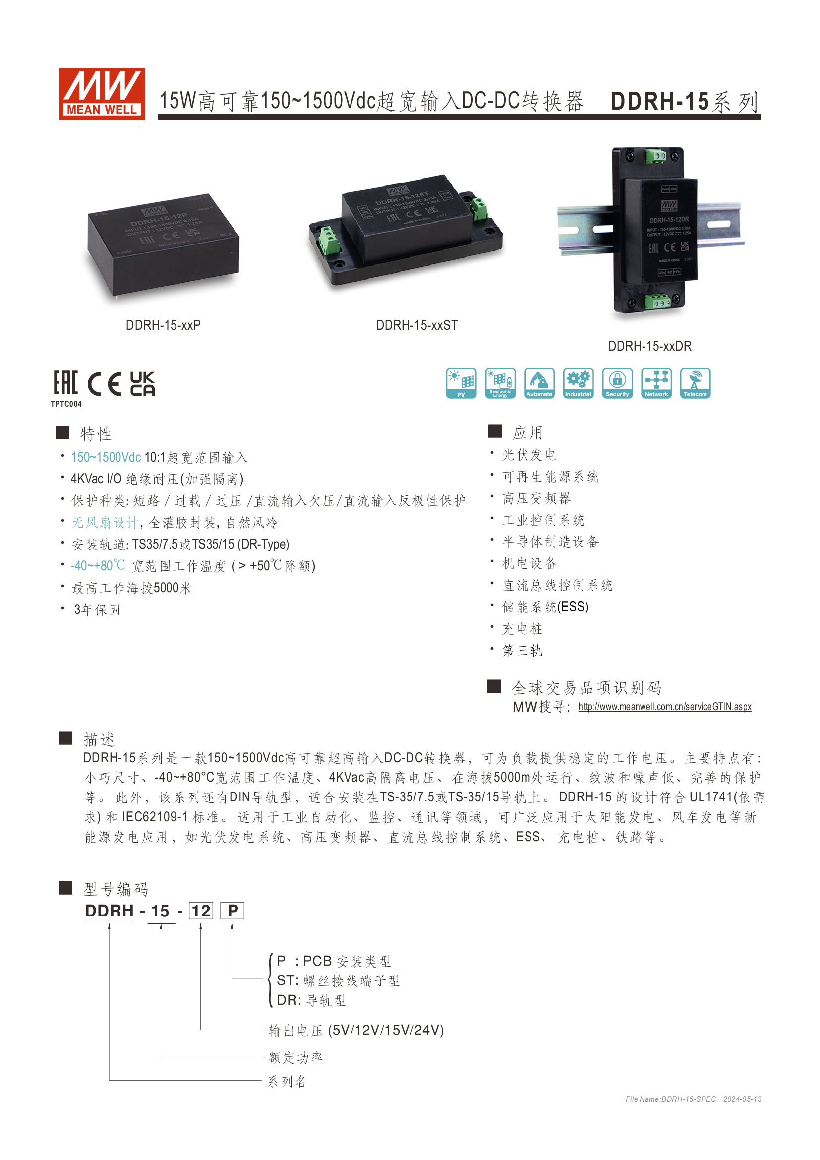 多種安裝方式可供選擇(基板型、端子式和導軌式) 10:1 超寬輸入范圍 內部灌膠,提供防塵和防潮保護 超寬溫度范圍:-40℃~+80℃ 保護功能:短路保護、超載保護、過電壓保護、輸入電壓過低及極性反接保護 3年保固