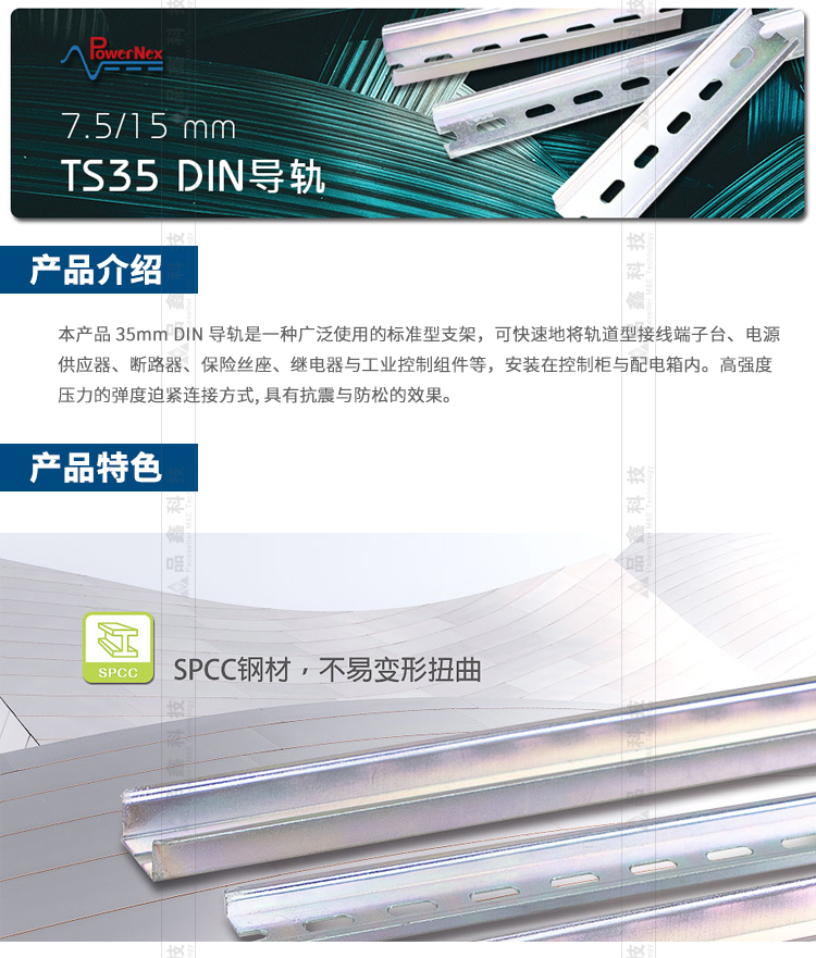 TS35導軌 明緯聯(lián)源精密7.5/15 mm泛用型導軌支架控制柜配電箱支架